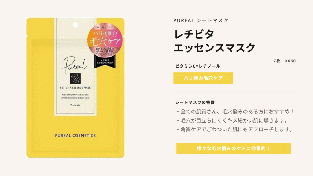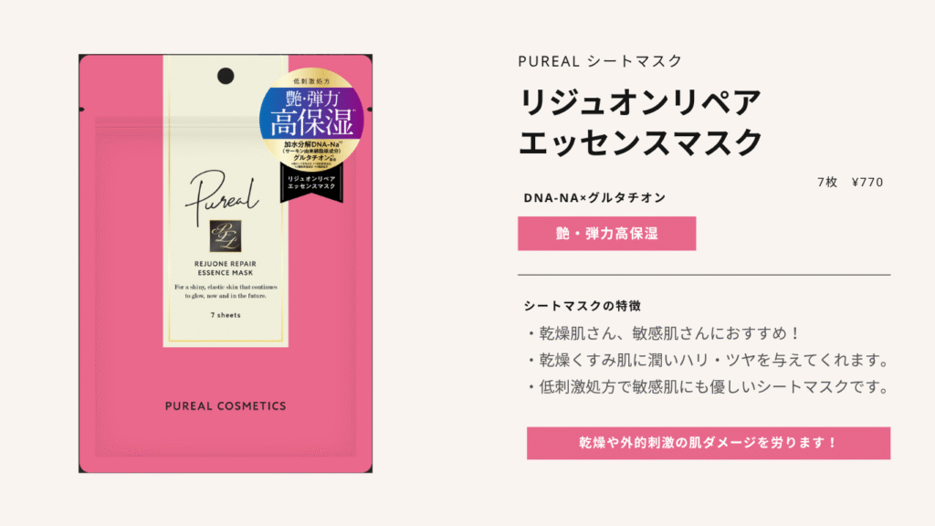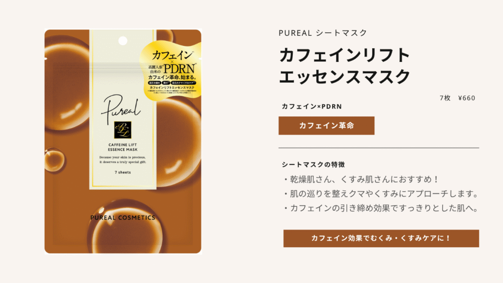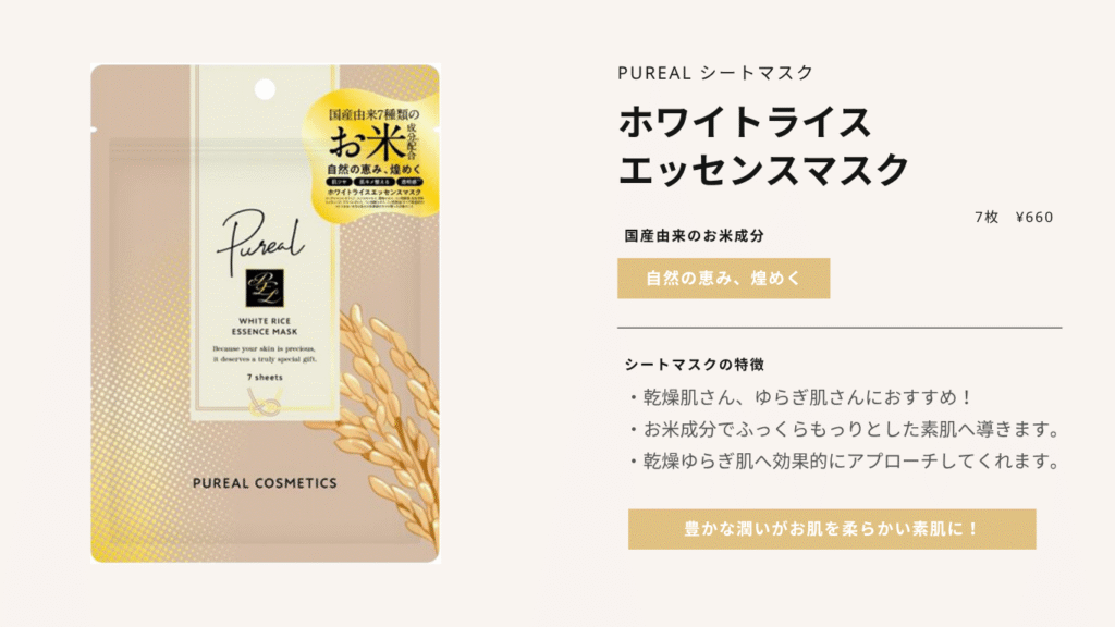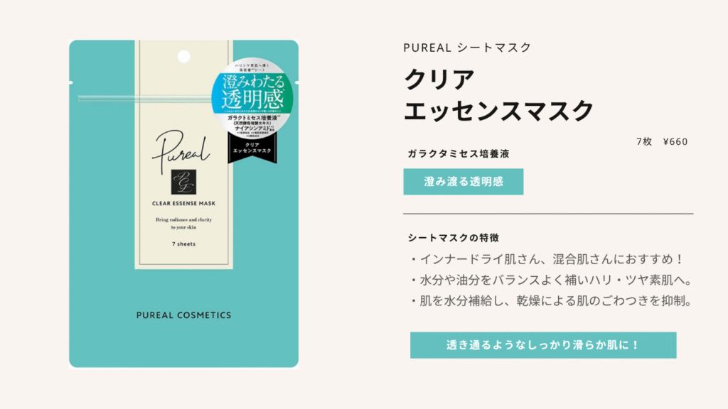 ピュレアのシートマスクは、肌とメイク後どちらにも自信が持てるようにサポートしてくれます。