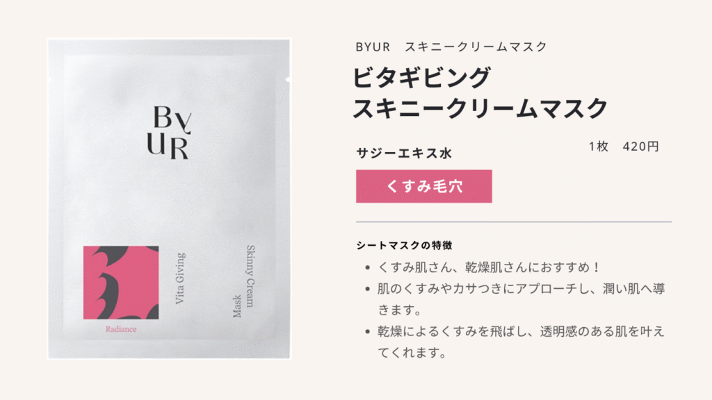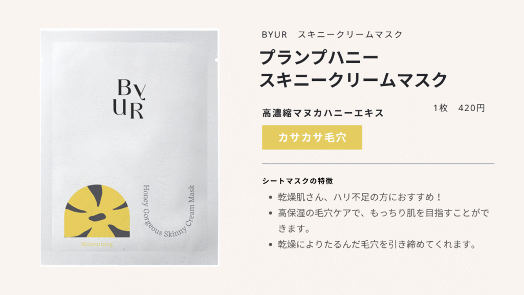 ByuRのスキニークリームマスクは、毛穴悩みに合わせているので、素肌の美しさを磨き上げてくれます。