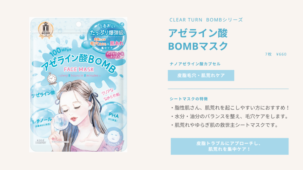 皮脂トラブルにアプローチし、肌荒れを集中ケアしてくれるシートマスクです。