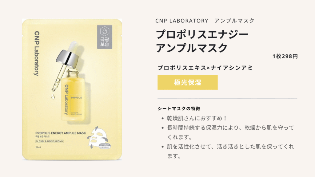 ・保湿力が優れているので、秋冬の乾燥時期にも最適なアンプルマスクです。