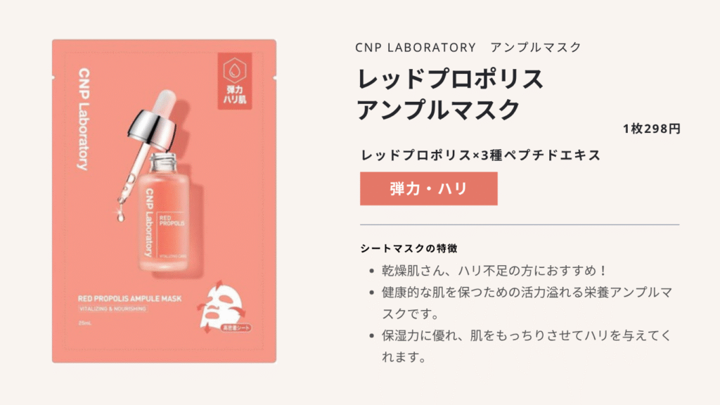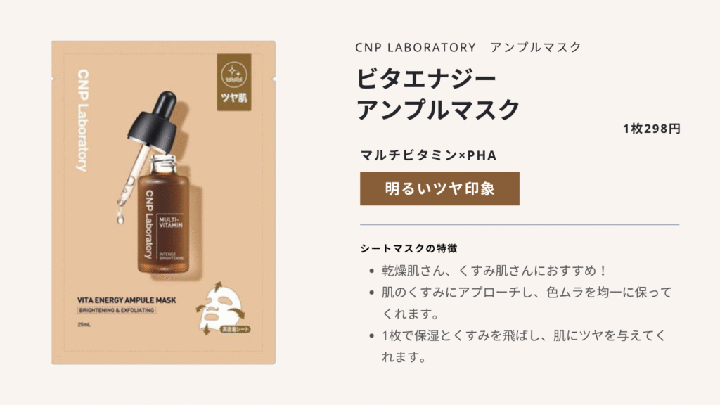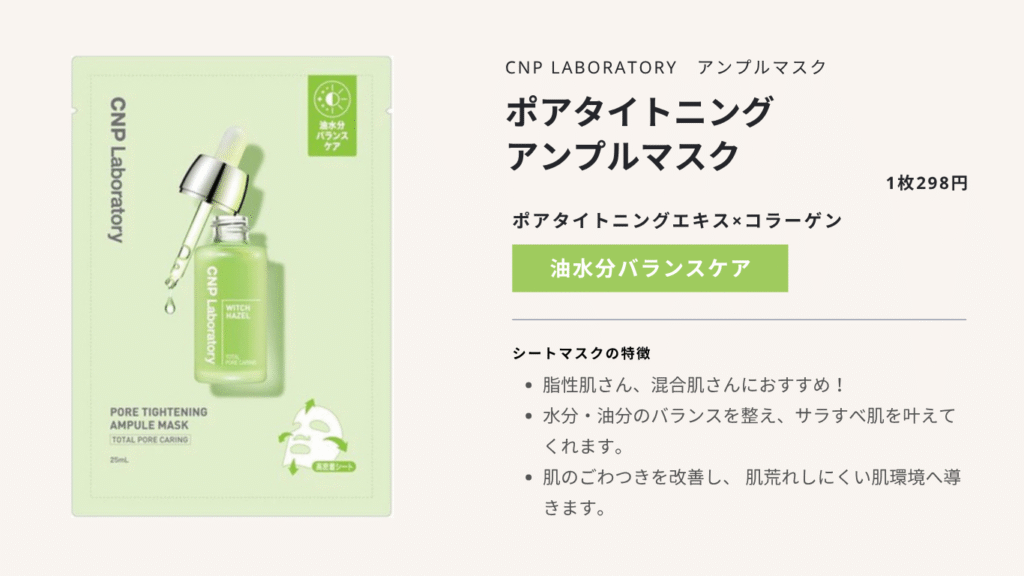 CNP Laboratoryのチャアンドパグアンプルマスクは、健やかな肌に改善させる力を養うことができます。