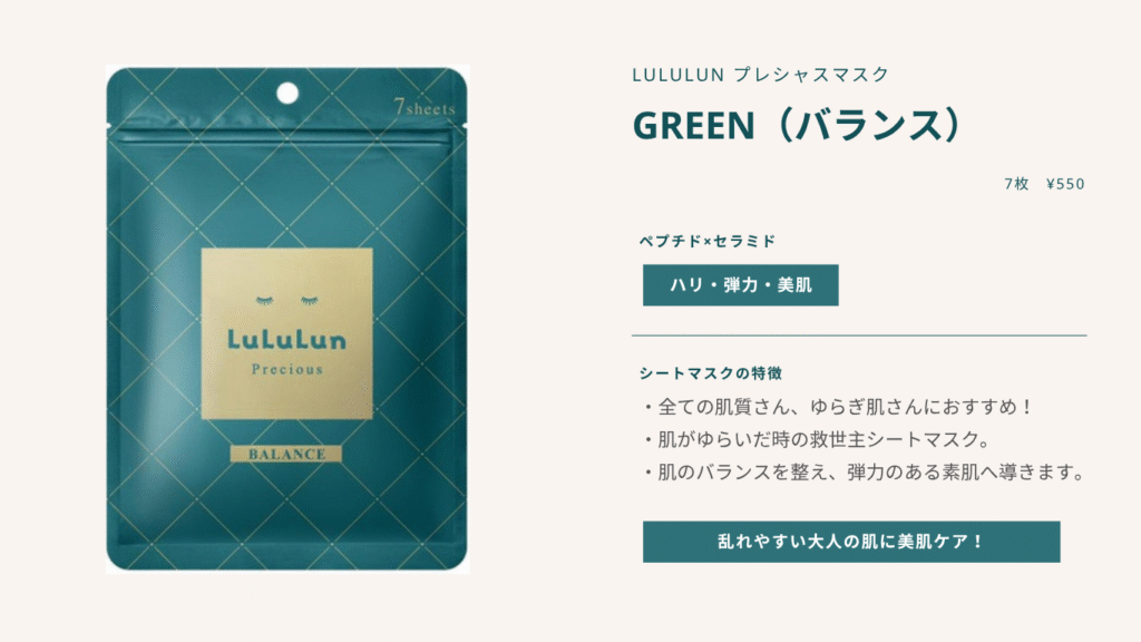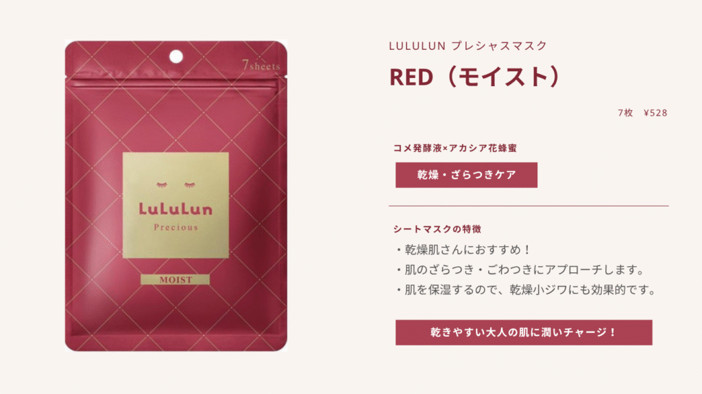LuLuLunのプレシャスマスクは、大人ならではの肌悩みにはアプローチしてくれます。
