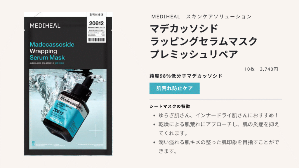①マデカッソシド ラッピングセラムマスクプレミッシュリペア