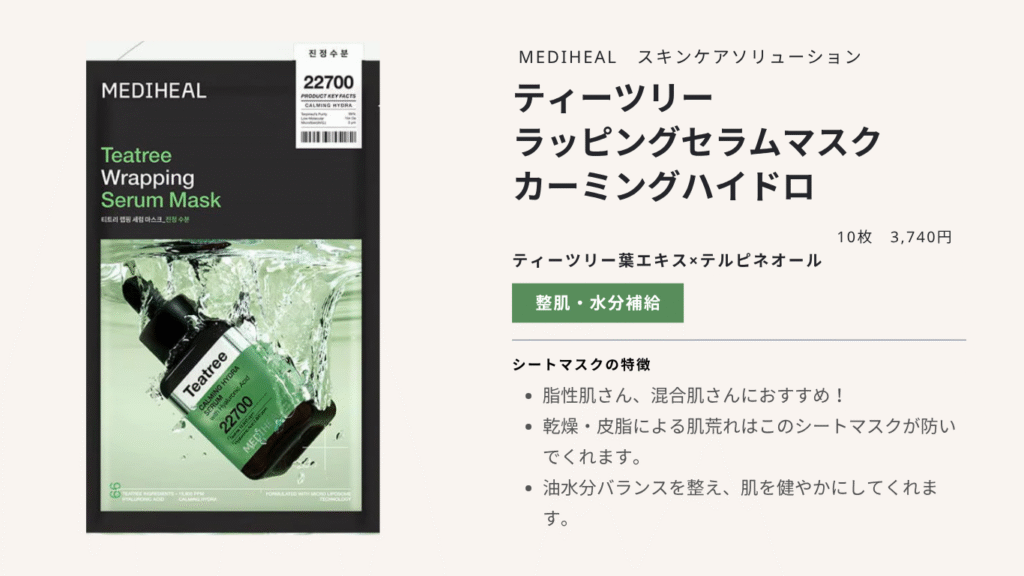 ②ティーツリー ラッピングセラムマスクカーミングハイドロ