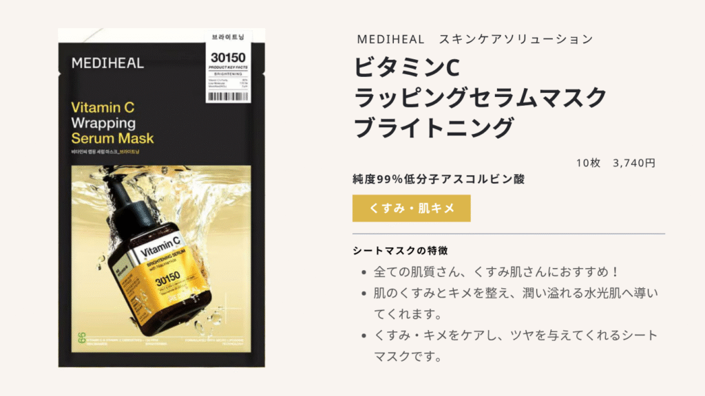 敏感肌さんにも優しいシートマスクなので、ビタミンCの刺激が苦手な方にも安心です。