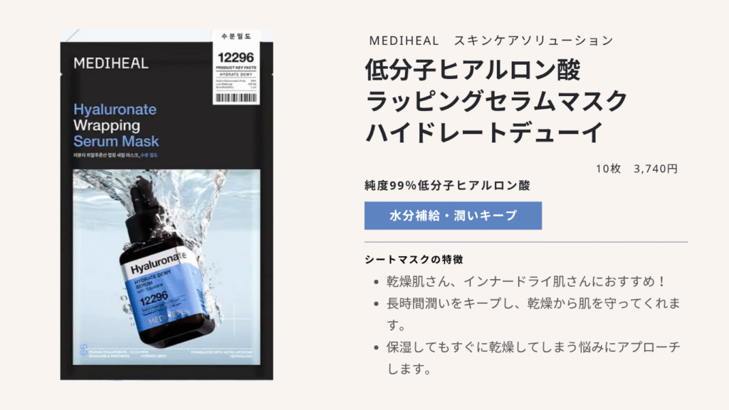 ④低分子ヒアルロン酸 ラッピングセラムマスクハイドレートデューイ