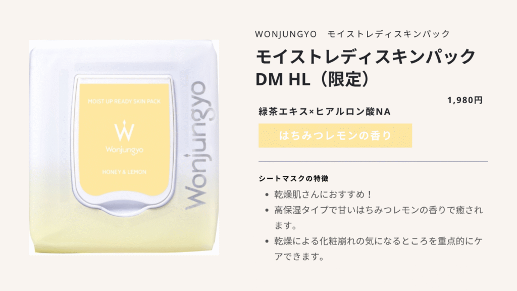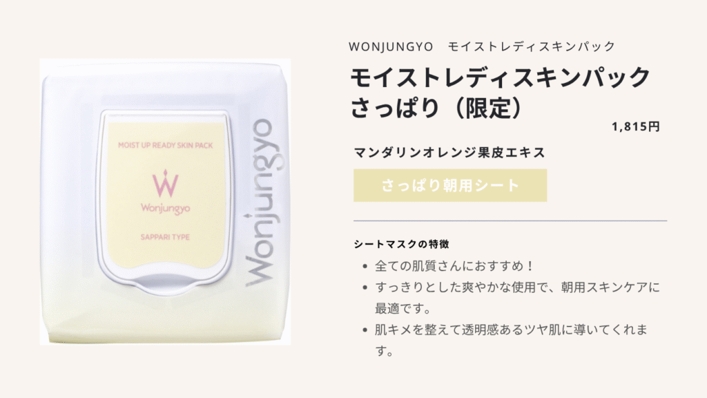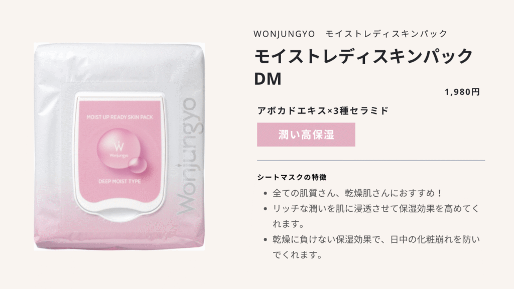 Wonjongyoのモイストレディスキンパックは、スキンケア後のメイクでより美しい自分に導いてくれます。